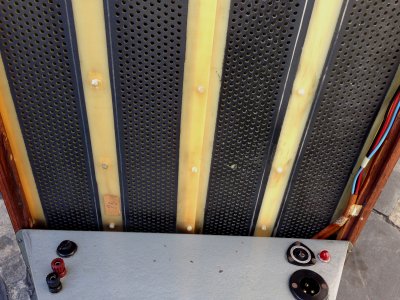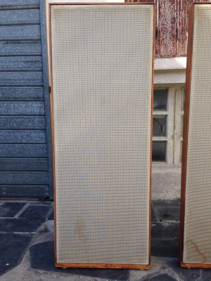 Description : Etonnants panneaux électrostatiques, sans doute début 70s et d'origine anglaise d'après la connectique d'alimentation. Fabricant non connu. Apparemment 4 cellules de basses et 2 cellules de medium/aigu. Fonctionnelles. Prix : Nous consulter