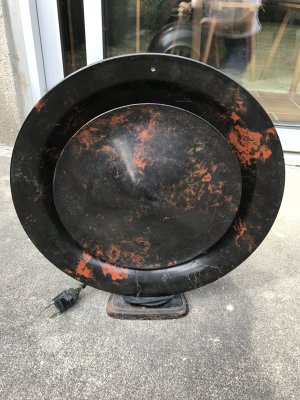Description : Rare et superbe diffuseur Philips des années 30, surnommé le plat à barbe. Diamètre 40 cm, bakélite 2 tons en bel état, fonctionnel. Prix : Nous consulter