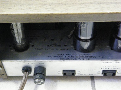 Bel ampli à lampes américain Bell 2420 des années 60, équipé de lampes préampli 12AX7 (ECC83) et de lampes de puissance 6V6 en push-pull (environ 2 x 12 W). Très bon état général. Très belle musicalité dans le style HH Scott, Fisher, HK, ...