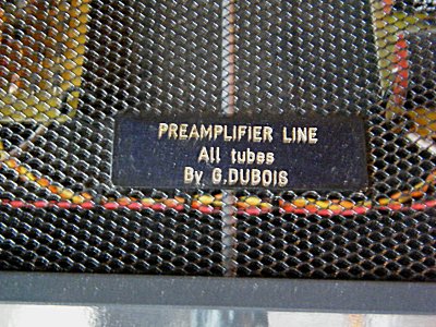 Description : Rare ensemble ampli/préampli de haute qualité Dubois. Le bloc de puissance stéréo est basé sur un push-pull d'EL519, pour une puissance de l'ordre de 2 x 50 W. Du haut vol !