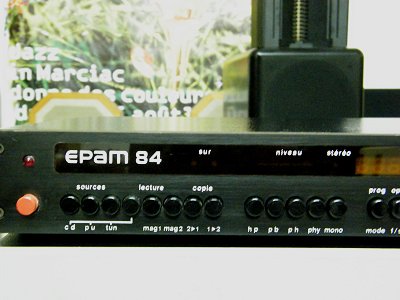 Rare ampli-tuner Epam 84 de 1984. Extra plat, puissance de l'ordre de 2 x 50 W, tuner digital, alimentation généreuse avec transfo torique. Un appareil étonnant de finesse et de musicalité, qui était fabriqué par les Ingénieurs de l'Ecole des Arts et Métiers. A écouter absolument.