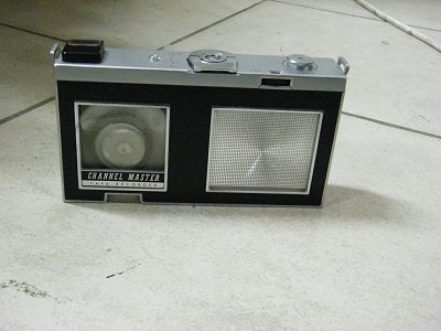 Description : Rare magnétophone à bandes, à cassettes spéciales (bobines superposées), Channel Master des années 60 (comparable à Sanyo). Fonctionne avec 4 piles de 1,5 V. Livré avec sa housse et son micro.