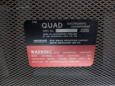 LEGENDAIRES ENCEINTES ELECTROSTATIQUES QUAD ESL57, LE PREMIER MODELE. LES GRAVES SONT BIEN SUR MOINS ABONDANT QU'AVEC UNE ENCEINTE CONVENTIONNELLE, MAIS LES MEDIUM/AIGUS SONT PRODIGIEUX. BON ETAT GENERAL. AMPLIS CONSEILLES : QUAD II OU ELECTROCOMPANIET THE TWO CHANNEL ... NOUVELLES PHOTOS. BON ETAT, REVISEES.