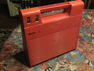 Bel électrophone mono Philips 180 des années 70, en rouge. 33/45 tours, en ordre de marche.