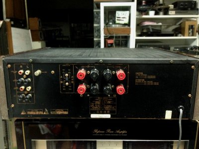 Ampli de puissance de haut vol de Pioneer, le M-90, série Elite (Urushi) finition noir laqué avec les flancs bois. Belles performances et musicalité. Fabriqué comme un tank, structure double mono, 2 x 200 W. Sera livré révisé.