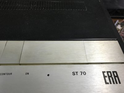 RARE AMPLI VINTAGE FRANCAIS ERA ST-70 DES ANNEES 70. FACE AVANT EN ACIER BROSSE, 2 x 35 W, COMMUTATEUR POUR CONNECTIQUE DIN OU RCA. TRES BELLE FABRICATION. BONNE MUSICALITE ! SERA LIVRE REVISE
