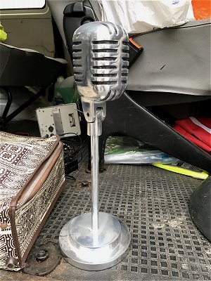 Micro factice sur pied, en fonte d’alu, copie du fameux Shure 55SH.