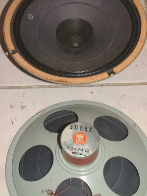 Description : Rares boomers 24 cm Audax T24 PA12. Moteur Alnico, suspensions petits plis papier, impédance 4 Ohms, en très bon état.