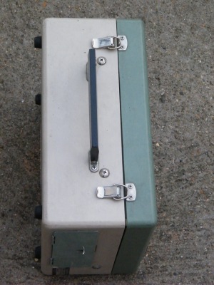 Description : Rare magnétophone japonais portable de taille réduite, FUJIYACORDER Model-EX322, en bon état. Livré avec son micro et son cordon d'alim (trappe de rangement latéral). Vitesses 4,75 et 9,5 cm/sec, utilise des bobines de 13 cm.