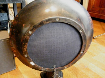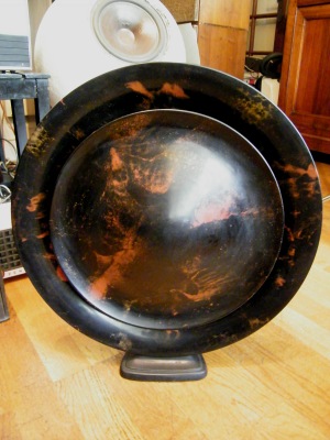 Description : Superbe haut parleur Philips des années 30, surnommé le plat à barbe. Diamètre 45 cm environ, bakelite 2 tons à 100 %. Révisable sur demande.